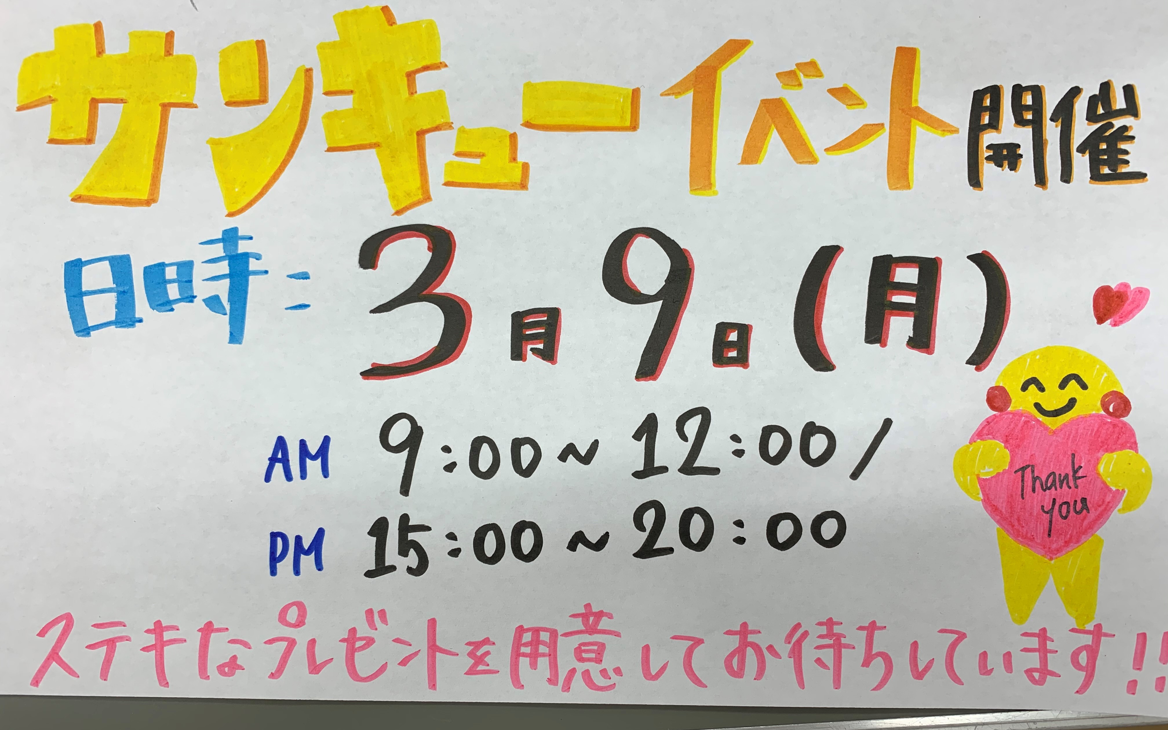3月9日(月)当日は日ごろの感謝をより込めて診療いたします!